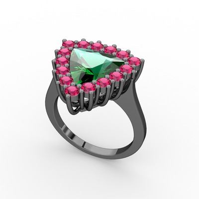 Yeşil kuvars ve rodolit garnet 925 ayar siyah rodyum kaplama gümüş yüzük