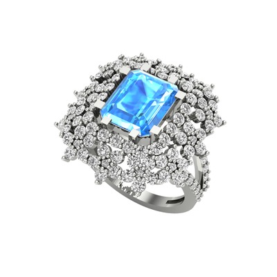 Akuamarin ve beyaz zirkon 8 ayar beyaz altın yüzük