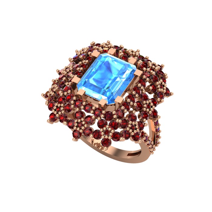 Akuamarin ve garnet 8 ayar rose altın yüzük