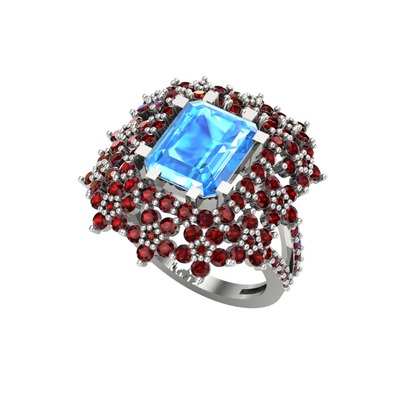 Akuamarin ve garnet 925 ayar gümüş yüzük
