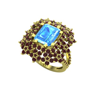 Akuamarin ve kök yakut 8 ayar altın yüzük