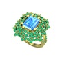 Akuamarin ve kök zümrüt 925 ayar altın kaplama gümüş yüzük