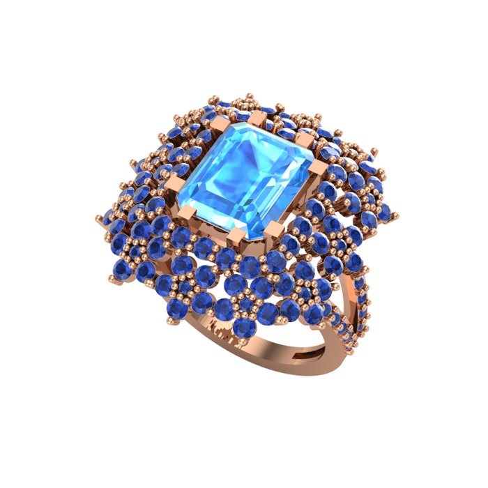 Akuamarin ve lab safir 8 ayar rose altın yüzük