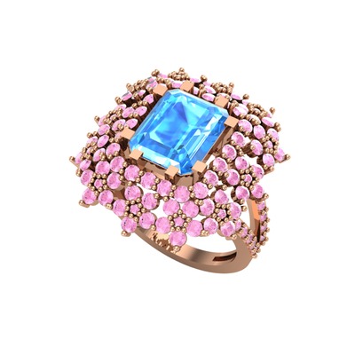 Akuamarin ve pembe kuvars 14 ayar rose altın yüzük