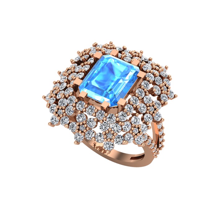 Akuamarin ve pırlanta 18 ayar rose altın yüzük (1.725 karat)