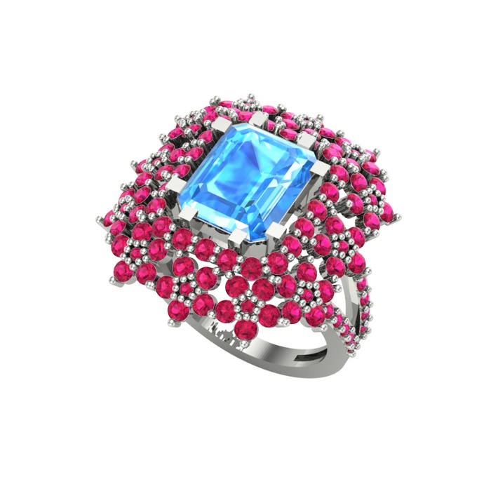 Akuamarin ve rodolit garnet 925 ayar gümüş yüzük
