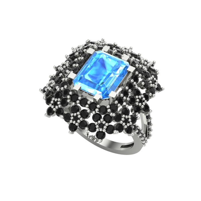 Akuamarin ve siyah zirkon 925 ayar gümüş yüzük