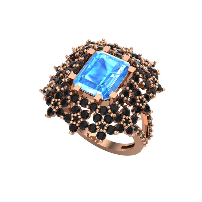 Akuamarin ve siyah zirkon 925 ayar rose altın kaplama gümüş yüzük