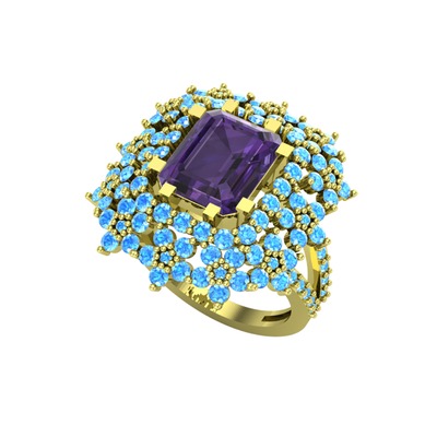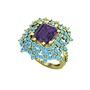 Ametist ve akuamarin 925 ayar altın kaplama gümüş yüzük