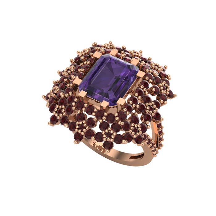 Ametist ve kök yakut 8 ayar rose altın yüzük