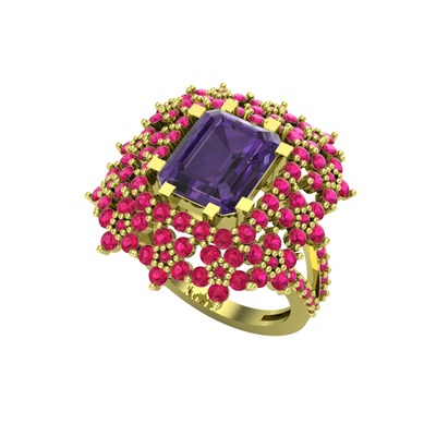 Ametist ve rodolit garnet 925 ayar altın kaplama gümüş yüzük