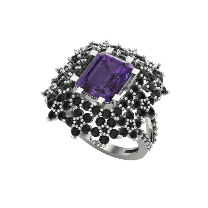 Ametist ve siyah zirkon 8 ayar beyaz altın yüzük
