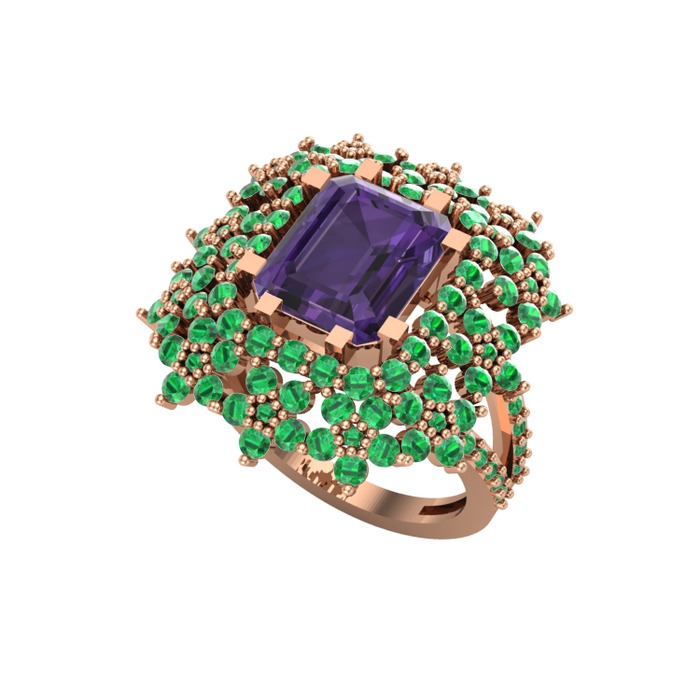 Ametist ve yeşil kuvars 14 ayar rose altın yüzük
