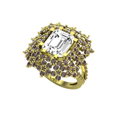 Beyaz zirkon ve dumanlı kuvars 8 ayar altın yüzük