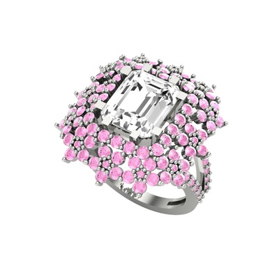 Beyaz zirkon ve pembe kuvars 18 ayar beyaz altın yüzük