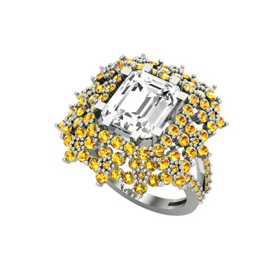 Beyaz zirkon ve sitrin 8 ayar beyaz altın yüzük