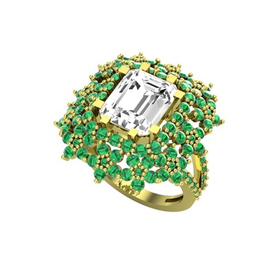Beyaz zirkon ve yeşil kuvars 14 ayar altın yüzük