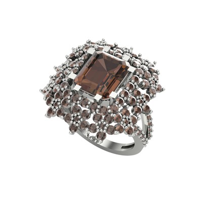 Dumanlı kuvars 18 ayar beyaz altın yüzük