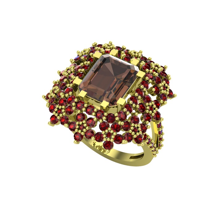 Dumanlı kuvars ve garnet 14 ayar altın yüzük