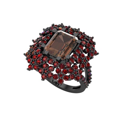 Dumanlı kuvars ve garnet 925 ayar siyah rodyum kaplama gümüş yüzük