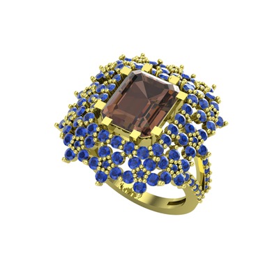 Dumanlı kuvars ve lab safir 18 ayar altın yüzük
