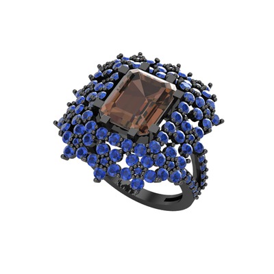 Dumanlı kuvars ve lab safir 925 ayar siyah rodyum kaplama gümüş yüzük