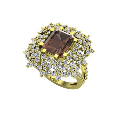 Dumanlı kuvars ve pırlanta 14 ayar altın yüzük (1.725 karat)