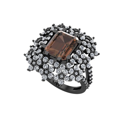 Dumanlı kuvars ve pırlanta 925 ayar siyah rodyum kaplama gümüş yüzük (1.725 karat)
