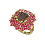 Dumanlı kuvars ve rodolit garnet 18 ayar altın yüzük