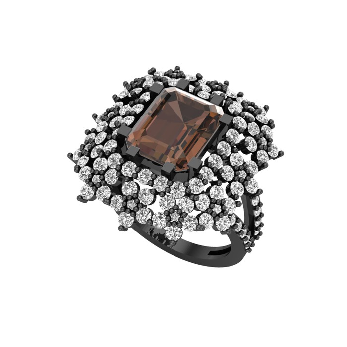 Dumanlı kuvars ve swarovski 925 ayar siyah rodyum kaplama gümüş yüzük