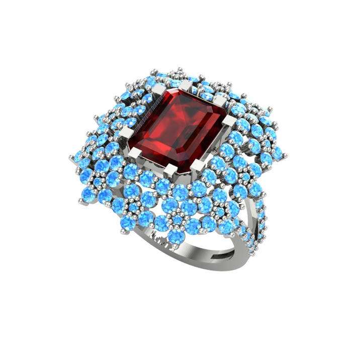 Garnet ve akuamarin 18 ayar beyaz altın yüzük