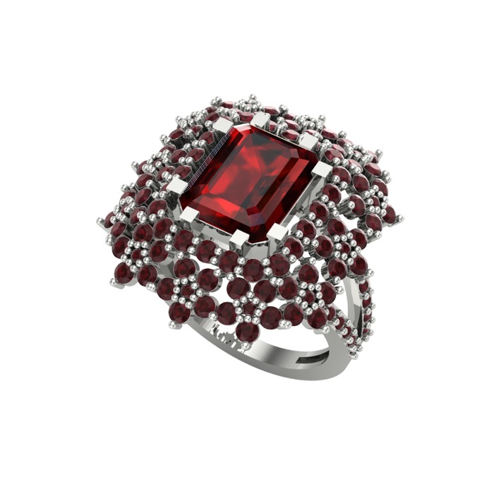 Garnet ve kök yakut 14 ayar beyaz altın yüzük