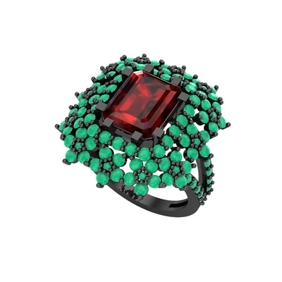 Garnet ve kök zümrüt 925 ayar siyah rodyum kaplama gümüş yüzük