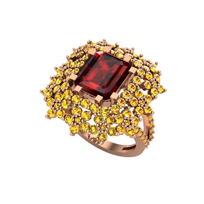 Garnet ve sitrin 8 ayar rose altın yüzük