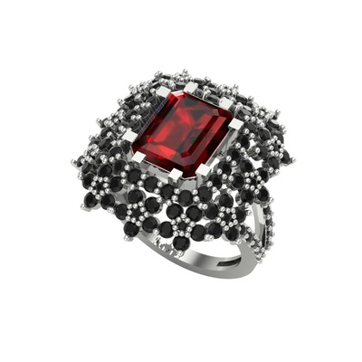 Garnet ve siyah zirkon 8 ayar beyaz altın yüzük