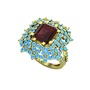 Kök yakut ve akuamarin 14 ayar altın yüzük
