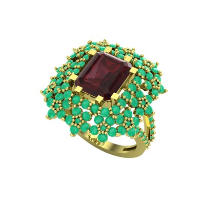 Kök yakut ve kök zümrüt 925 ayar altın kaplama gümüş yüzük