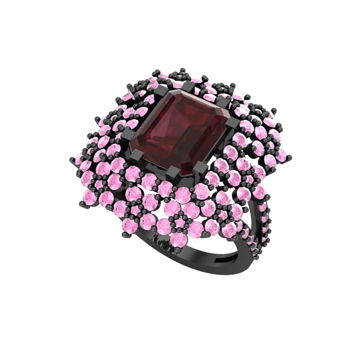 Kök yakut ve pembe kuvars 925 ayar siyah rodyum kaplama gümüş yüzük