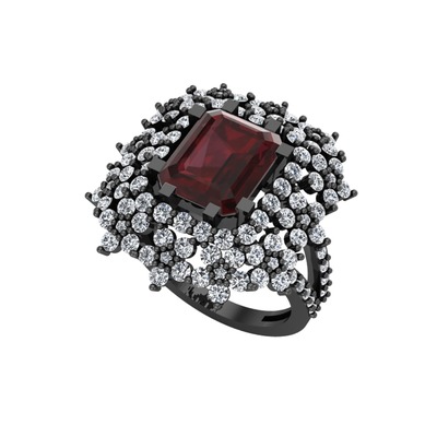 Kök yakut ve pırlanta 925 ayar siyah rodyum kaplama gümüş yüzük (1.725 karat)
