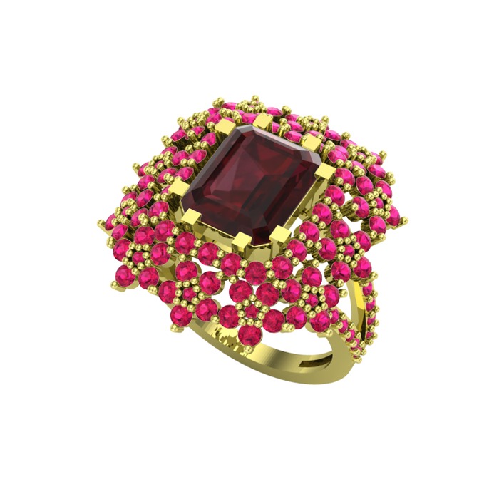 Kök yakut ve rodolit garnet 925 ayar altın kaplama gümüş yüzük