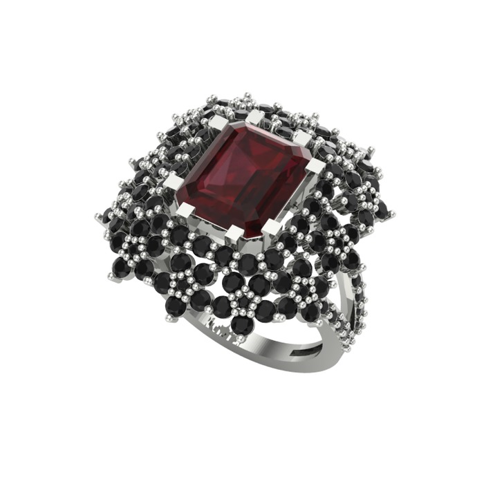 Kök yakut ve siyah zirkon 18 ayar beyaz altın yüzük