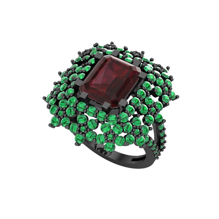 Kök yakut ve yeşil kuvars 925 ayar siyah rodyum kaplama gümüş yüzük