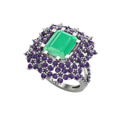 Kök zümrüt ve ametist 8 ayar beyaz altın yüzük