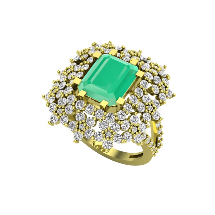 Kök zümrüt ve beyaz zirkon 18 ayar altın yüzük