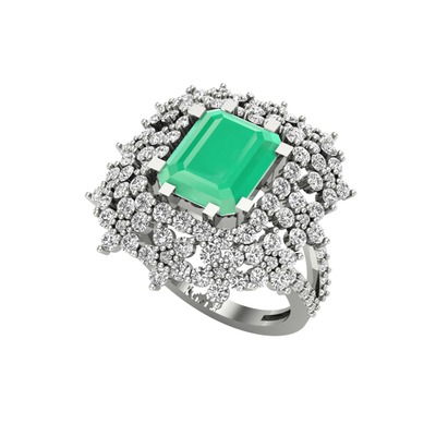 Kök zümrüt ve beyaz zirkon 18 ayar beyaz altın yüzük
