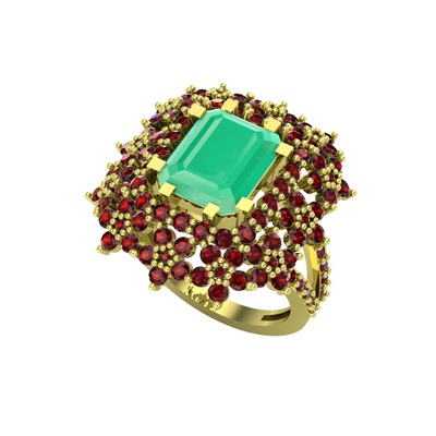 Kök zümrüt ve garnet 18 ayar altın yüzük