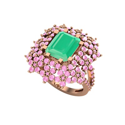 Kök zümrüt ve pembe kuvars 925 ayar rose altın kaplama gümüş yüzük
