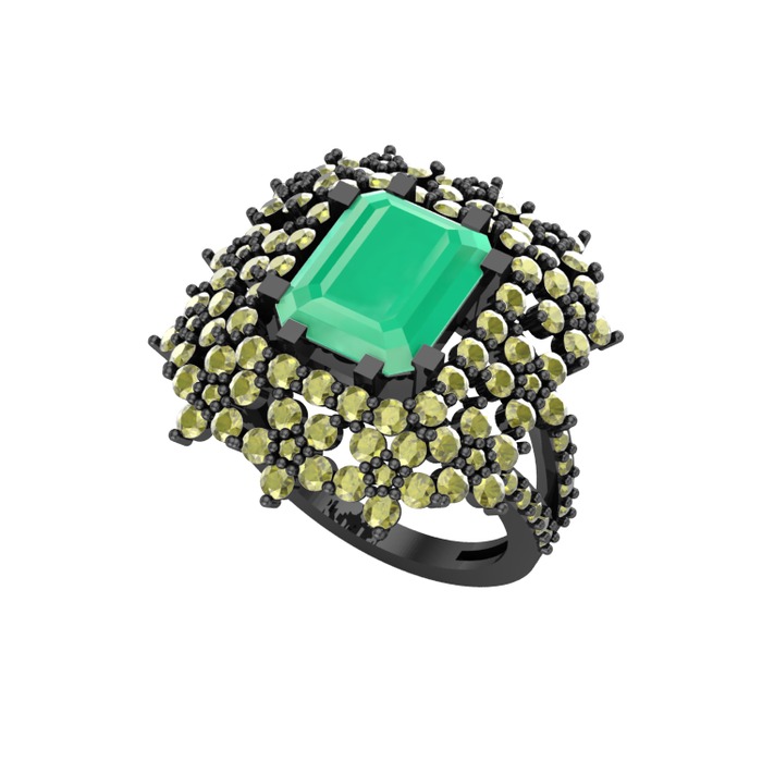 Kök zümrüt ve peridot 925 ayar siyah rodyum kaplama gümüş yüzük