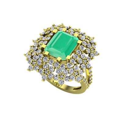 Kök zümrüt ve pırlanta 14 ayar altın yüzük (1.725 karat)
