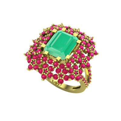 Kök zümrüt ve rodolit garnet 8 ayar altın yüzük